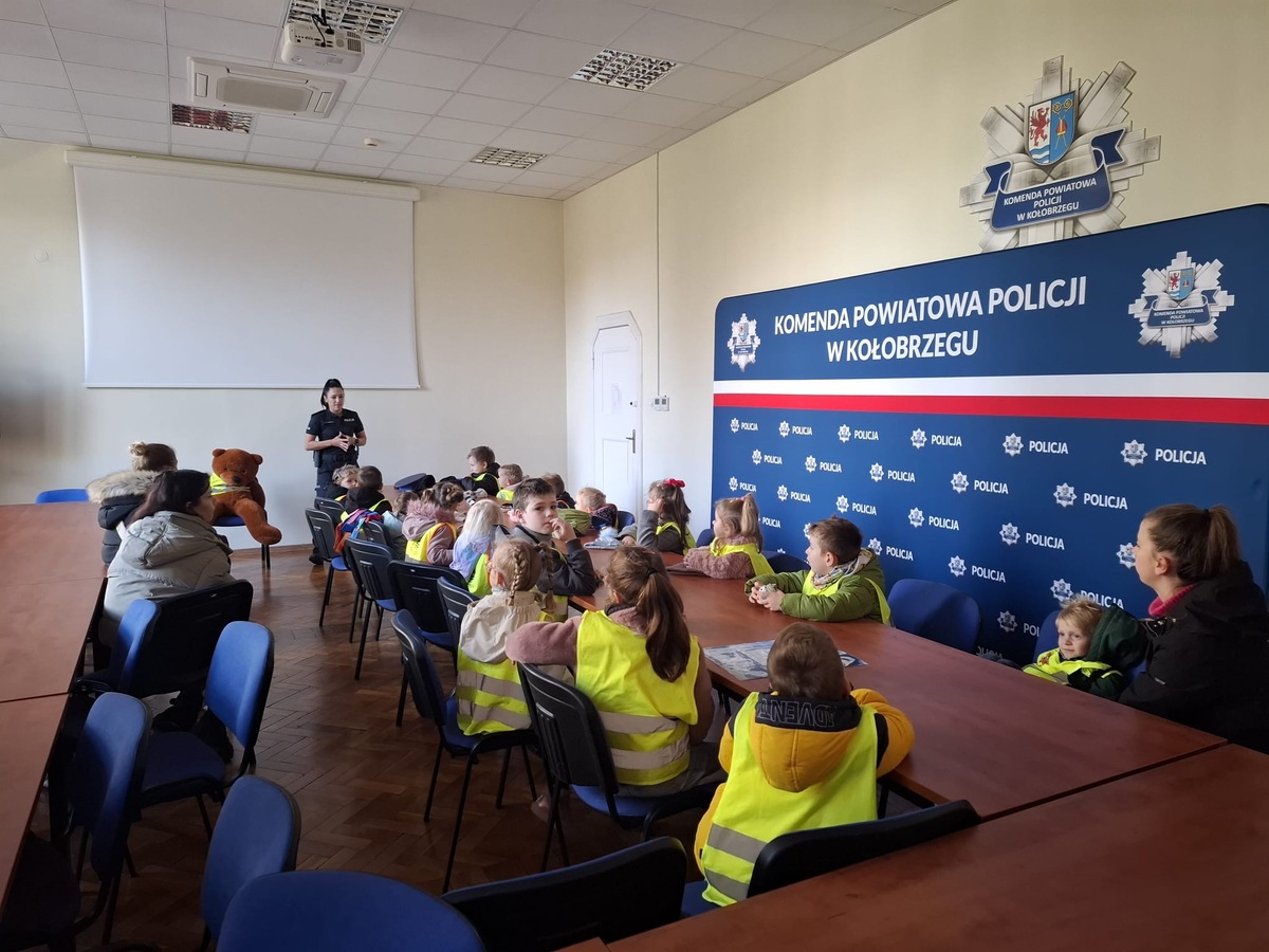 Komendę Powiatową Policji w Kołobrzegu odwiedziły dzieci z Przedszkola „Równe Szanse”. Maluchy miały okazję poznać codzienną pracę policjantów, zobaczyć radiowozy, wsiąść na policyjny motocykl i dowiedzieć się, jak dbać o bezpieczeństwo.