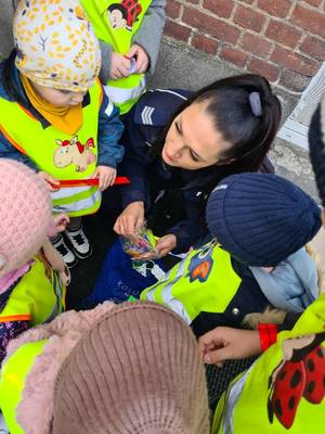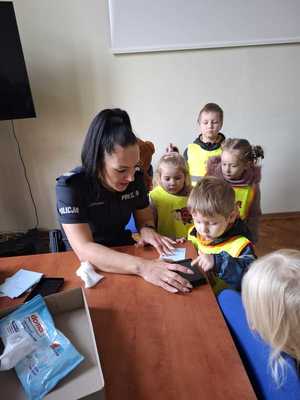Najwięcej emocji wzbudziła możliwość zajrzenia do wnętrza policyjnych radiowozów oraz usiąść na motocyklu policyjnym. Każde dziecko otrzymało także odblask, by mogło być widoczne i bezpieczne podczas spacerów. Na pamiątkę wizyty maluchy wykonały własne odciski palców, poznając w zabawny sposób elementy pracy technika kryminalistyki.