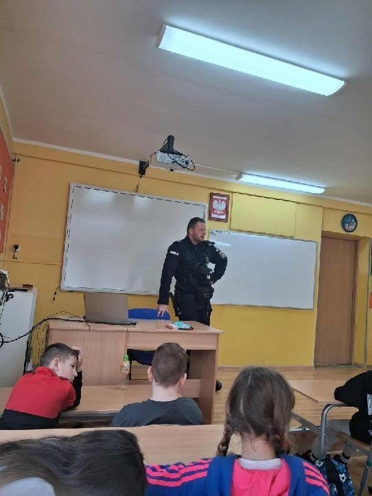 Policjant odwiedził uczniów szkoły w Robuniu – rozmowa o hejcie i przemocy w Internecie