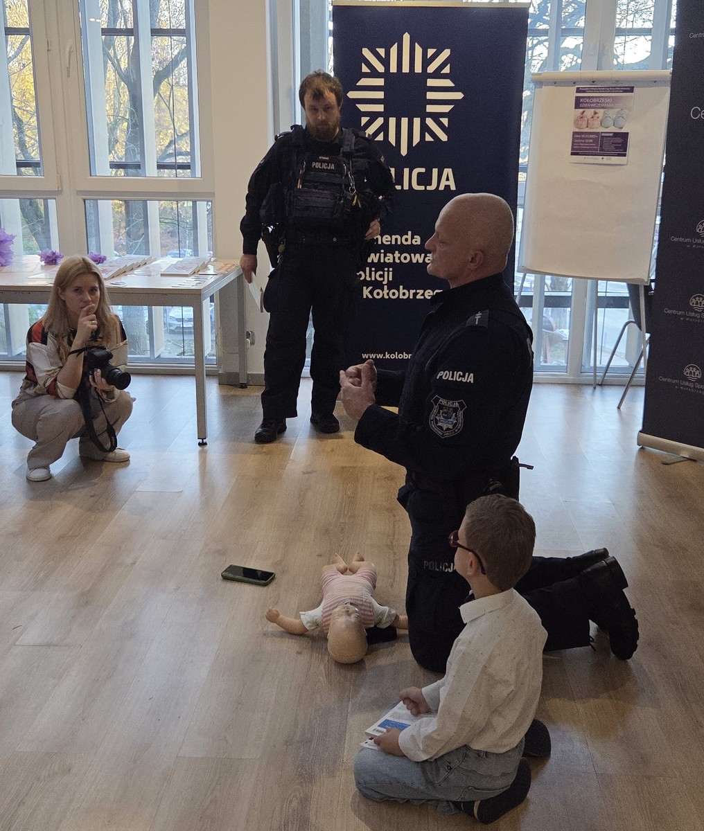 Podczas wydarzenia obecny był także funkcjonariusz Komendy Powiatowej Policji w Kołobrzegu, asp. Stanisław Malepszak, który zaprezentował praktyczny pokaz pierwszej pomocy noworodkom. Uczestnicy dowiedzieli się, jak reagować w sytuacjach zagrożenia życia i jakie czynności można podjąć, by skutecznie udzielić pomocy najmłodszym.