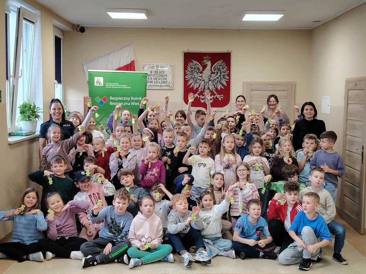 Policjanci i przedstawiciele KRUS spotkali się z najmłodszymi uczniami Szkoły Podstawowej w Charzynie, by wspólnie rozmawiać o bezpieczeństwie w ruchu drogowym.