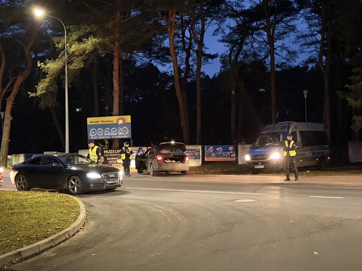 Następnego dnia, w środę 19 listopada, działania przeniesiono na teren gminy Kołobrzeg. W operacji uczestniczyli policjanci miejscowego posterunku, funkcjonariusze WRD oraz OPP. Mundurowi wylegitymowali 60 osób, przeprowadzili 36 kontroli pojazdów, 12 kontroli bagażu i 230 badań trzeźwości. Nałożyli 9 mandatów, zastosowali 12 pouczeń, odwiedzili 3 rodziny w ramach procedury „Niebieskiej Karty” i doprowadzili jedną osobę do wytrzeźwienia. Ponadto funckjonariusze OPP Szczecin zatrzymali do kontroli 56 - letniego kierującego rowerem, który poruszał się bedąc w stanie nietrzeźwości z wynikiem 1,3 promila. Kierujący przyjął mandat karny w wysokości 2500 złotych.