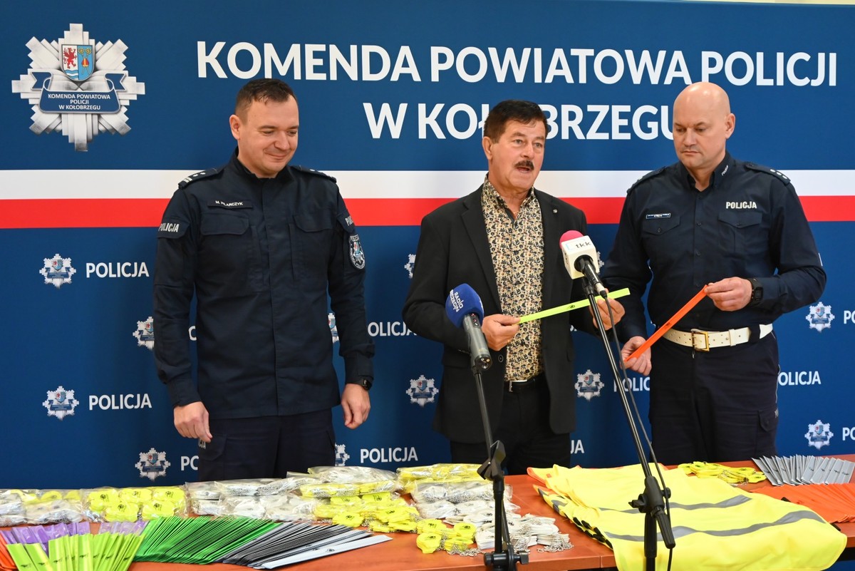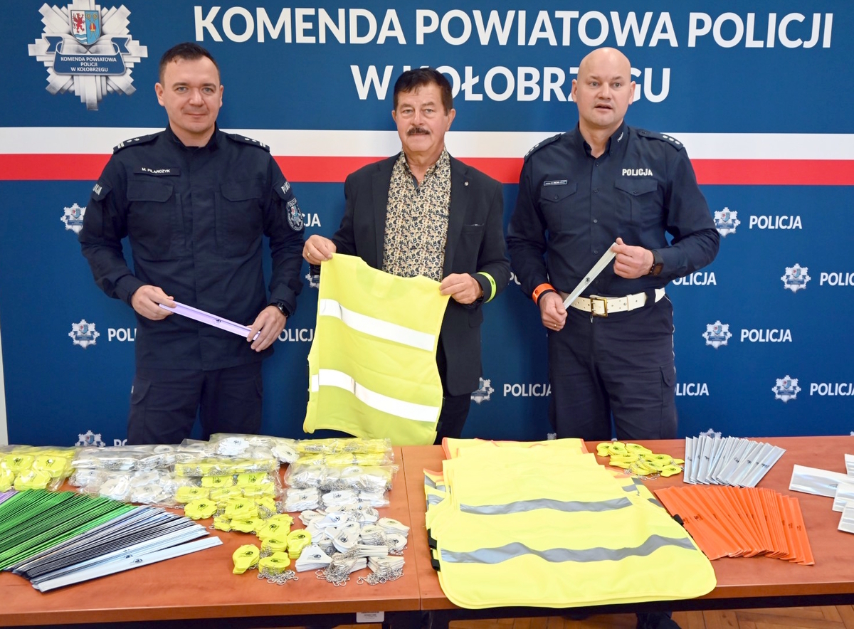 Dziś w Komendzie Powiatowej Policji w Kołobrzegu odbyło się krótkie spotkanie z udziałem Starosty Kołobrzeskiego Mirosława Tessikowskiego, podczas którego przekazano na rzecz jednostki 4 tysiące odblasków.
