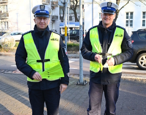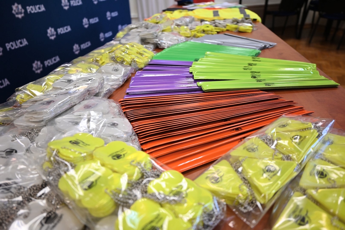 Tuż po zakończeniu spotkania policjanci wyszli na ulice miasta, gdzie rozdawali część odblasków mieszkańcom, przypominając o obowiązku ich noszenia po zmroku oraz o wpływie widoczności na bezpieczeństwo na drodze.
