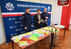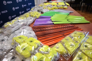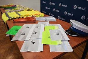 Podczas dzisiejszego spotkania w Komendzie Powiatowej Policji w Kołobrzegu starosta przekazał funkcjonariuszom 4 tysiące elementów odblaskowych przeznaczonych do działań profilaktycznych.
