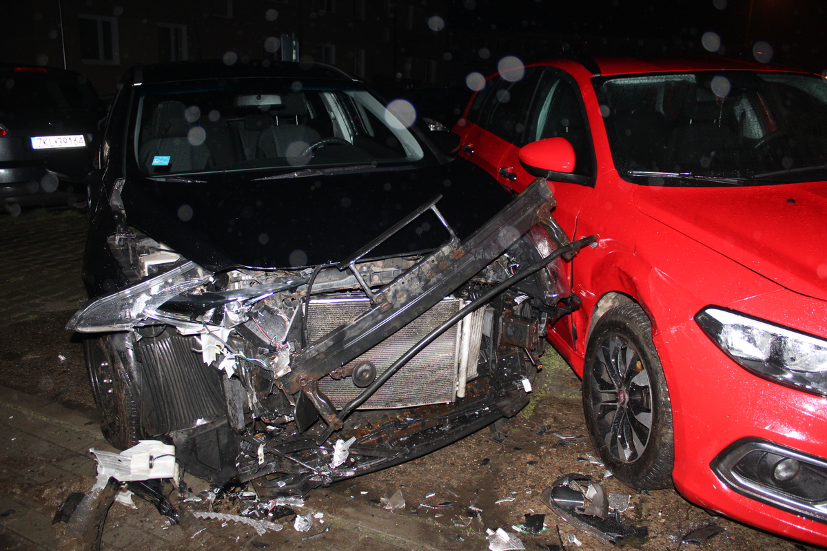W nocy z soboty na niedzielę w Drzonowie doszło do poważnego zdarzenia drogowego z udziałem dwóch mężczyzn podróżujących jednym samochodem. Początkowo za kierownicą siedział 34-latek, który miał 0,8 promila alkoholu w organizmie. W trakcie jazdy postanowili zamienić się miejscami, drugi z nich, 28-latek, wsiadł za kierownicę mimo aktywnego zakazu prowadzenia pojazdów i również w stanie nietrzeźwości. Ich „nocna zabawa” zakończyła się utratą panowania nad pojazdem, w wyniku czego uderzyli w dwa zaparkowane samochody, które zostały uszkodzone.