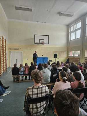 Spotkania miały formę rozmowy i wymiany doświadczeń, co pozwoliło uczniom zadawać pytania i dzielić się własnymi spostrzeżeniami. Tego typu działania profilaktyczne są niezwykle istotne, ponieważ pomagają kształtować właściwe postawy już od najmłodszych lat i budują świadomość odpowiedzialnego funkcjonowania w społeczeństwie.