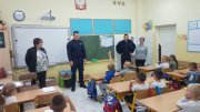 Komendant Powiatowy Policji w Kołobrzegu mł. insp. Dariusz Hoc odwiedził dziś uczniów ze Szkoły Podstawowej w Drzonowie. Tam na ręce grona pedagogicznego przekazał artykuły szkolne dla uczniów zgromadzone przez kołobrzeską jednostkę.